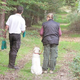 entlang gehen. Der Hund sollte natürlich bei Fuß ohne Leine gehen.