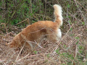 Markierungen auf die Wiese. Zuerst wird allerdings am seitlichen Waldrand von