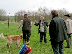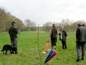 einer Wiese ca. 60 Meter von einem Teich entfernt. Die Aufgabenverteilung wurde