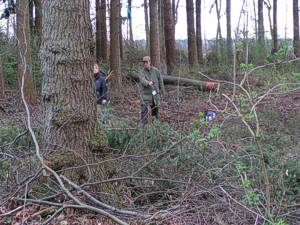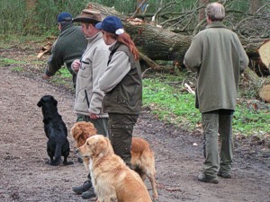 Waldstück in dem ein Treiben stattfindet. Hinter ihnen wird ebenfalls