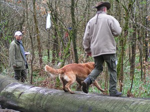Anschliessend sollen die Hunde in diesem Wald buschieren. Die Dummies waren